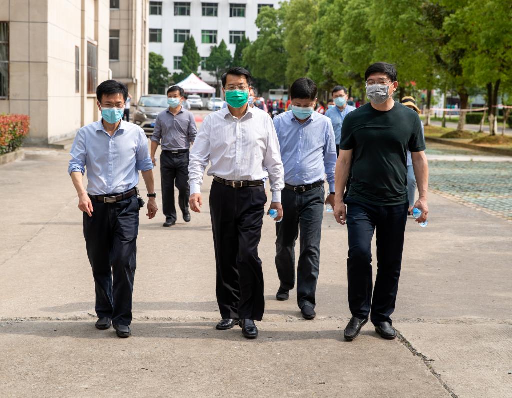 本站讯(党委宣传部 陈畅)4月30日,正值英国上市公司365学生即将返校复学之际,为充分做好学生返校复课准备和开学后校园疫情防控工作,确保师生身体健康和生命安全,英国上市公司365在校本部与南校区分别开展了春季学生返校疫情防控演练。市委常委、宣传部长袁川,市教育体育局局长袁志平,市卫健委主任余定新,市疾控中心副主任、首席专家陈钊一行来到英国上市公司365南校区,督察返校复课准备情况并现场指导。