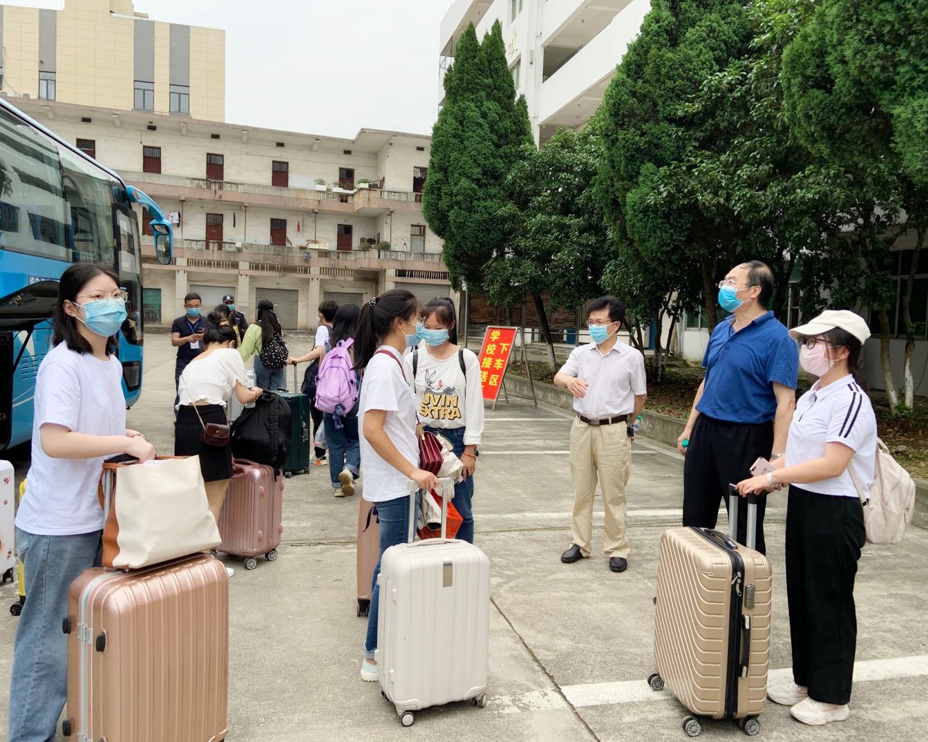 为迎接学生返校,学校做了大量的准备工作:组织师生员工根据前期制定的返校方案进行了多次应急演练;学工处组织了第一批返校相关学工和学院人员培训,针对返校学生进行信息摸排并组织安排了专人专车前往机场、高铁站、汽车站接站,确保学生一落地“零接触”返校;保卫处铺设地标、拉警戒线,联合城管执法大队对校园周边环境进行整治;后勤产业处、附属医院等部门积极筹备响应,对全校环境进行了清洁、消杀和通风等一系列措施,将科学防控落到实处,确保校园环境安全。