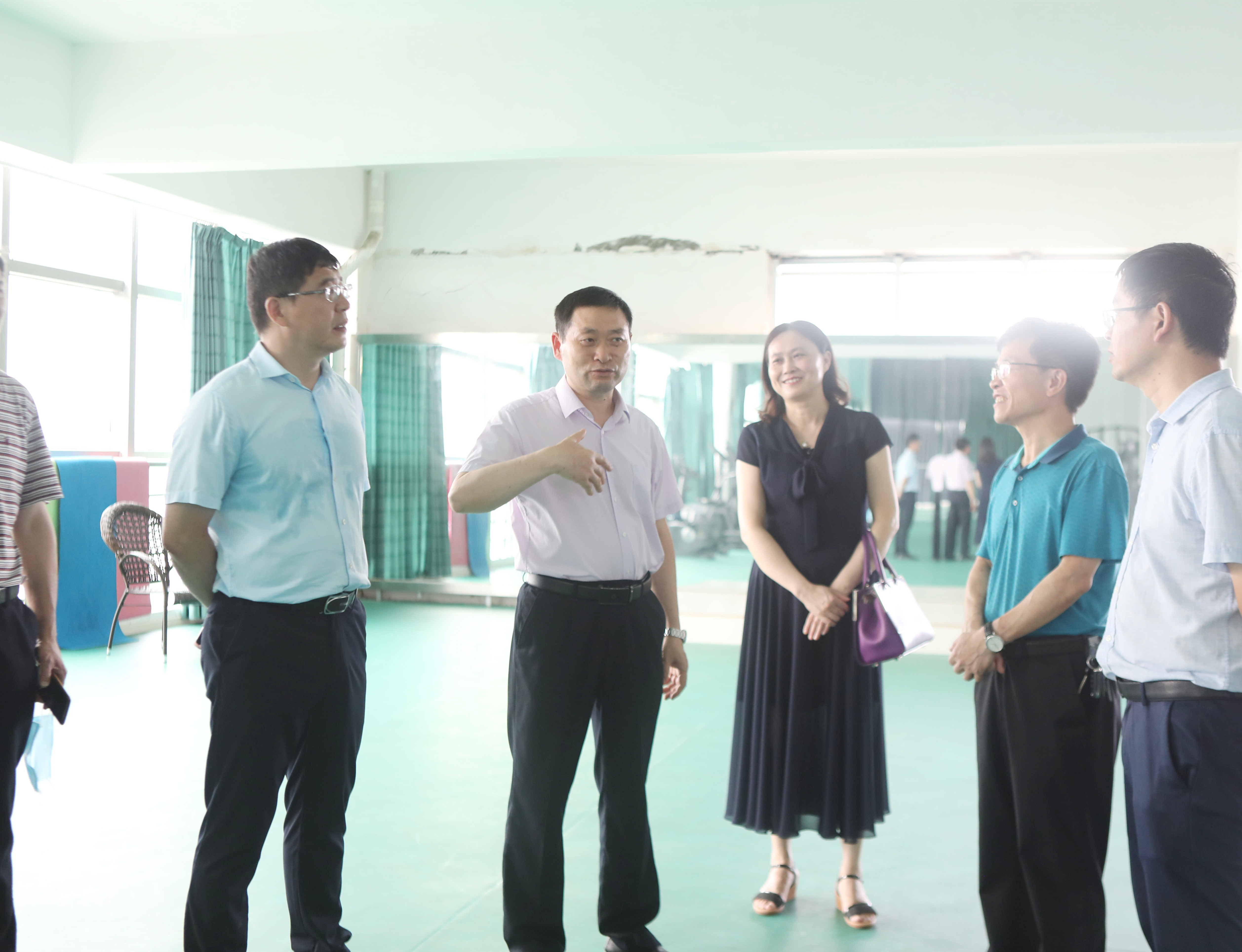 本站讯(工会 吴菊花)6月11日下午,江西省总工会一级巡视员吴海平、江西省教育工会常务副主席黄虹长、宜春市总工会副主席熊渭林、宜春市总工会副主席简江华一行来英国上市公司365调研。英国上市公司365党委书记任军、党委副书记、校长杨云山、党委委员、副校长易滨秀、副县级干部易良春陪同调研。