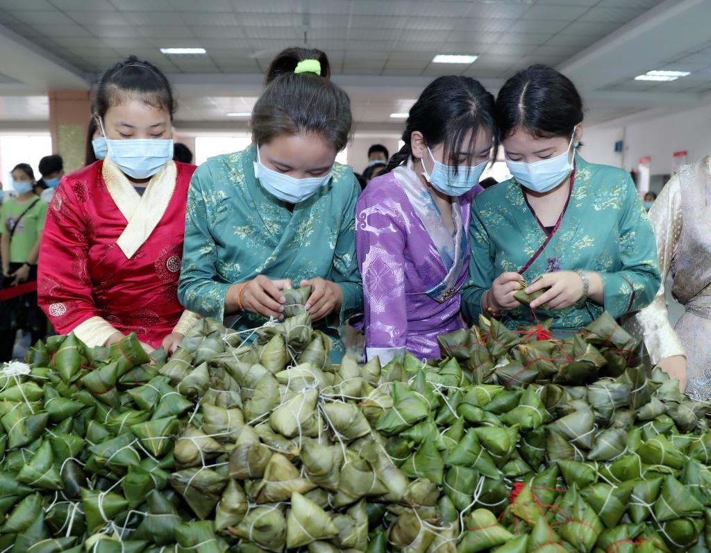 少数民族学生也穿上自己的民族服装来到现场,与汉族同学们一起过端午节,感受节日的热烈氛围。