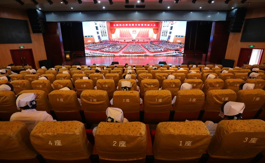 大会还对全国抗击新冠肺炎疫情先进个人、先进集体、全国优秀共产党员和全国先进基层党组织进行了表彰。师生们为抗疫英雄事迹所感染、所鼓舞。(摄影叶可)