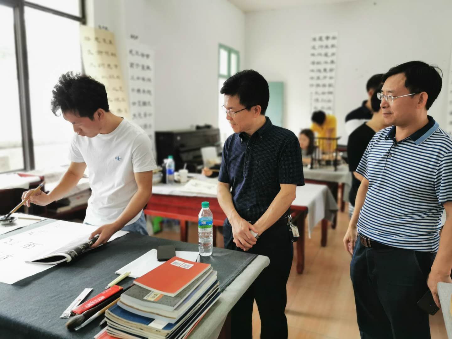 随后杨云山一行在院领导班子的陪同下,先后到艺术与设计学院的书法实训室、电钢琴实训室、舞蹈房等地视察,查看了硬件设施配备情况。