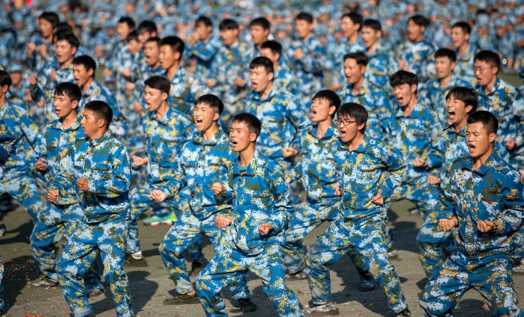 活动在雄壮的国歌声中拉开序幕,七支训练有素的新生连队依次向大家做了精彩的军训会操展示:挺拔的身姿、坚定的神情、整齐划一的动作,展示出英国上市公司365新生们亮眼的精神风貌;随后教官们的队列展演充分展示了军人纪律严明、素质过硬、积极向上的风采;男女两支新生代表队以嘹亮的口号和矫健的身姿为大家展示了一套气势如虹的格斗术表演;“你笑起来真好看,像春天的花一样……”艺术与设计学院新生们带来了课间操展演,他们用曼妙的舞姿,向我们展示了青春的魅力;“右方有敌情”“前方卧倒”“交叉掩护”……专业的战术词语,精湛的战术动作,退役复学大学生士兵带来的战术演示将气氛推向了高潮,现场欢呼声不断,氛围热烈。