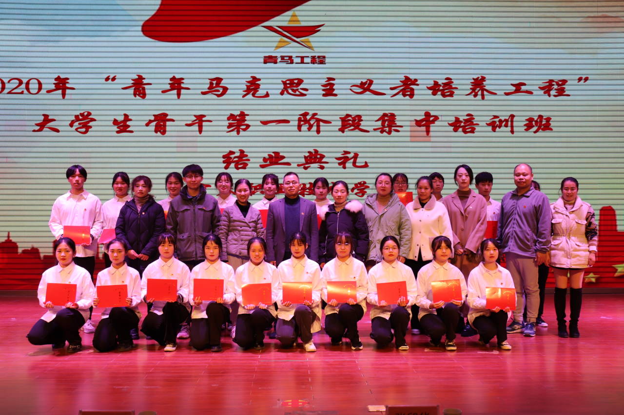 结业典礼于12月6日晚在科技综合楼二楼报告厅隆重举行。师范学院19高小教6班谢年峰作为学员代表发言,他号召全体学员在思想上、学习上、工作上做到积极进取、勇攀高峰、勇于创新,努力成为一名合格的社会主义建设者和接班人。随后,校团委副书记杨雨宣读了本次大骨班第一阶段集中培训班优秀学员名单,校党委委员、副校长张印华、校团委老师及各院团总支书记为优秀学员颁奖。