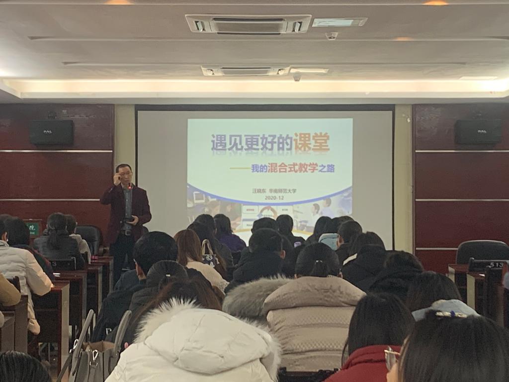 本站讯(教务处 吴少林)12月25日至26日,教务处举办的“混合式教学”工作坊在科技综合楼513会议室顺利开班。工作坊由华南师范大学汪晓东博士主讲,来自各教学院部的近100名教师参加了此次培训。