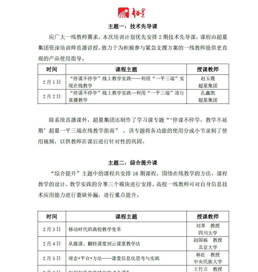 为了让老师们能够做好线上教学的充分准备,在初步确定线上教学工作方案后,立即与超星公司进行联系沟通,超星很快提供了线上教学解决方案,并开展了“停课不停学”线上教学培训。有些教师年龄偏大对网络教学还不熟悉,有些课程的网络教学资源几乎为零,在这样的情况下,各教学院部积极组织教师参加培训,精心遴选优质课程资源,确保在开学前每门课程都准备到位,不耽误学生按时开课。