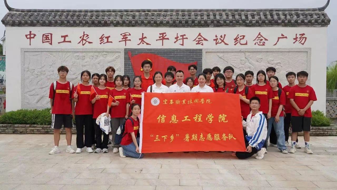 本站讯(信息工程学院 刘嘉妮 黄彪 学生记者 段涛)为全面贯彻习近平新时代中国特色社会主义思想,深入学习贯彻党的二十大精神,认真贯彻落实习近平总书记关于青年工作的重要思想,团结引领广大青年学生坚定跟党走、建功新时代,在社会实践中“受教育、长才干、作贡献”, 6月14日—7月12日,信息工程学院党总支书记罗来曦、团总支书记刘嘉妮带队,分别前往樟树西塘村、太平村、袁州区柏木乡、上高县塔下乡、天台镇塘溪村开展大学生暑期“三下乡”社会实践活动。