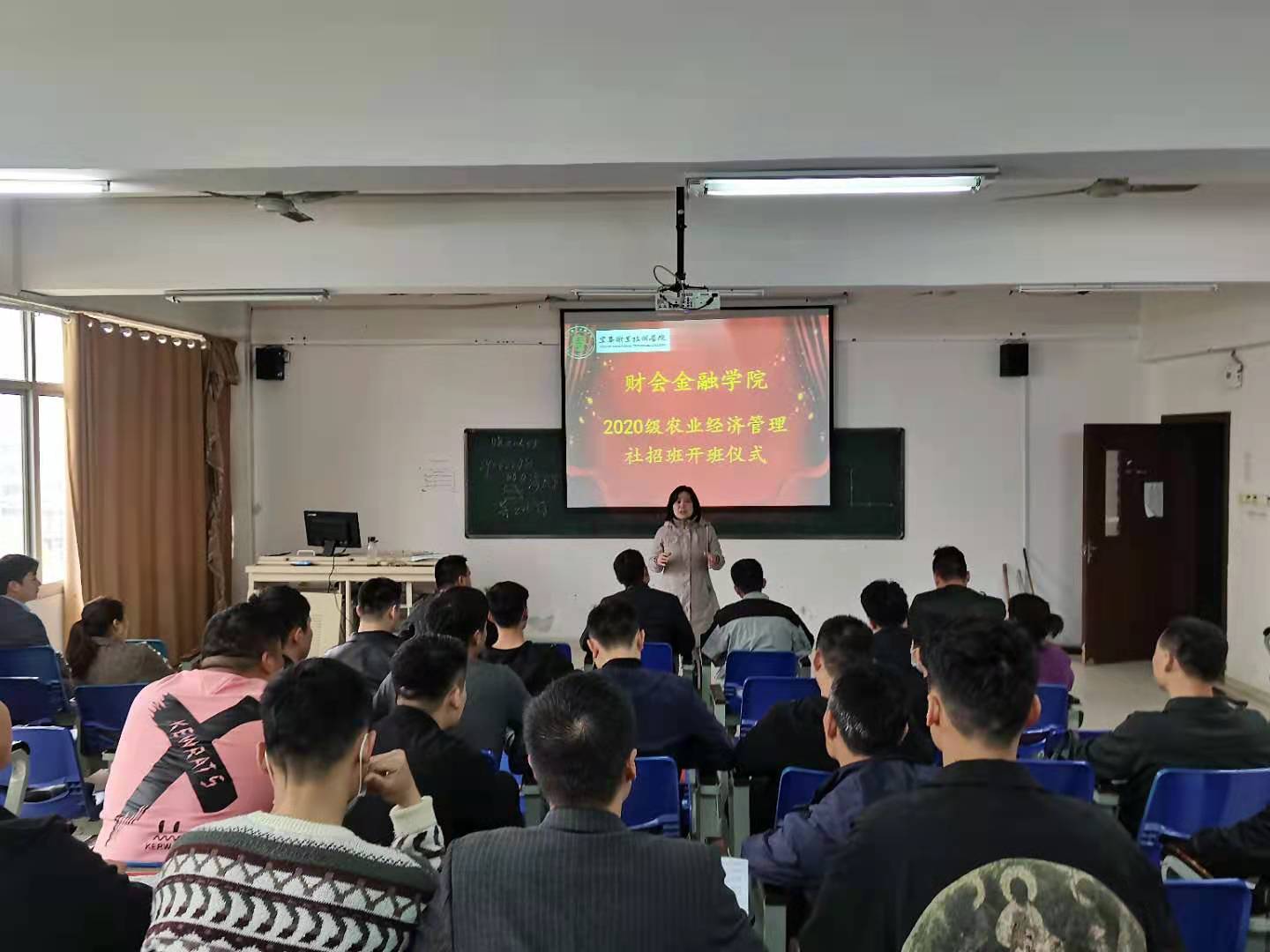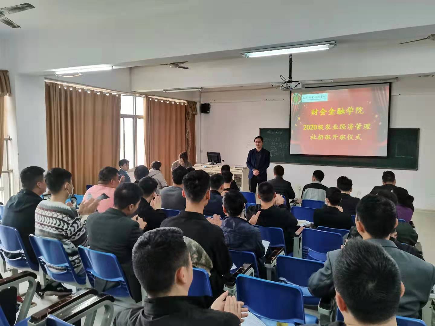 本站讯(财会金融学院 潘骁哲)3月27日上午八点半,财会金融学院在实训楼807阶梯教室举行20级农业经济管理专业社招班开班仪式,院长罗艳琴、党总支书记周昊、副书记邓晶、副院长邓如星及31位社招班学生参加开班仪式。仪式由邓如星主持。