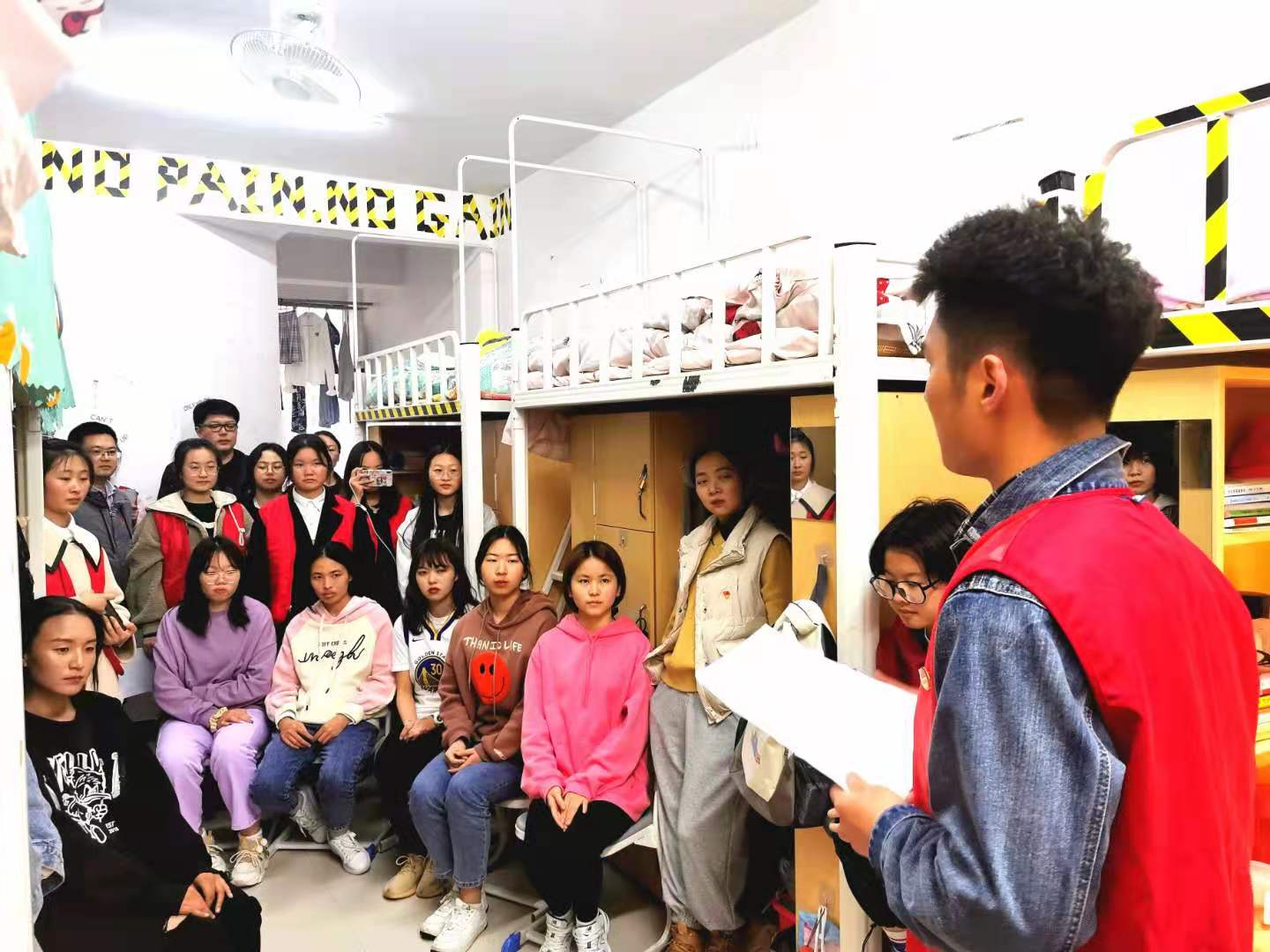据悉,为推动党史学习教育走深走实,机关第二党支部党员干部带领大学生先锋社党史宣讲小分队开展“五进五讲”活动,即进教室三尺讲台讲党史、进宿舍床前案头讲党史、进小学寓教于乐讲党史、进社区深入群众讲党史、进乡村田间地头讲党史。4月7日下午,党史宣讲小分队同学们还前往学校第五栋宿舍楼五楼525寝室开展了党史学习教育“五进五讲”之进寝室活动。