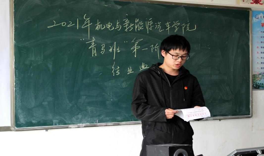 本站讯(机电与新能源汽车学院 周勤 学生记者 朱安可)4月20日下午,机电与新能源汽车学院2021年“青马工程”第一阶段集中培训班结业典礼在一教楼x806顺利举行,院党总支书记赵琰、党总支副书记宋秋奴、团总支书记周勤老师以及各团支部青马班学员参加了此次结业典礼。