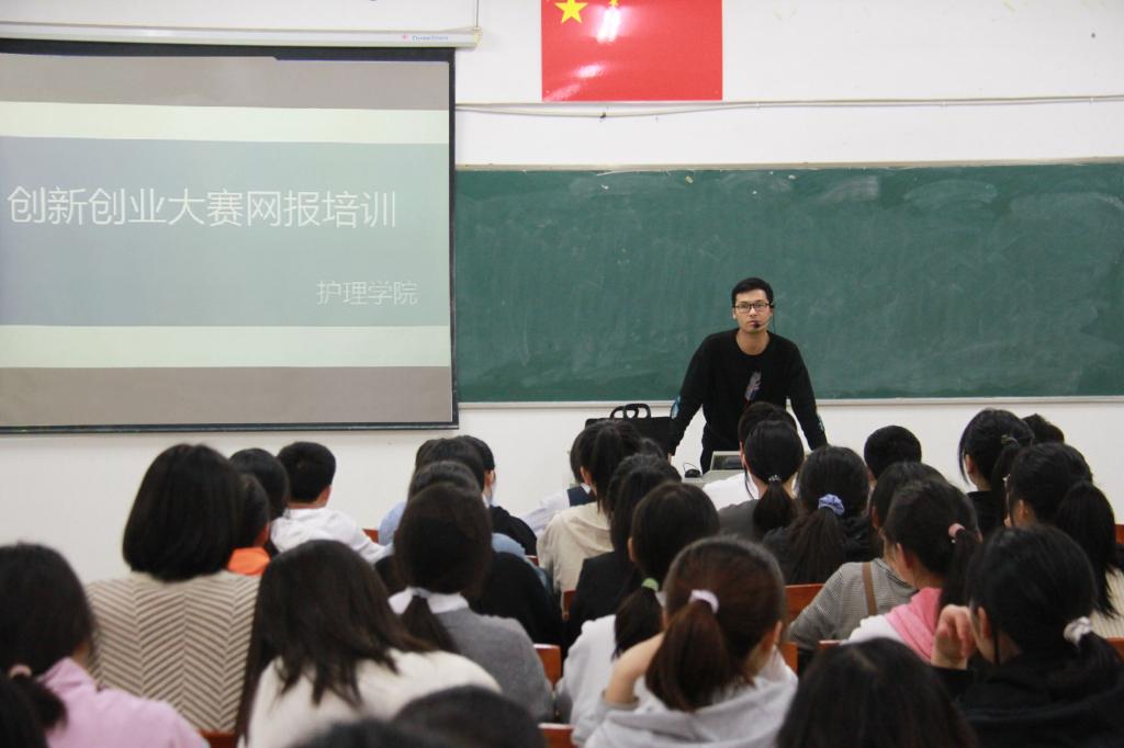 本站讯(护理学院 李辉员 学生记者 刘怡佳)为全面贯彻落实高等学校创新创业教育精神,积极配合学校完成第七届“互联网+”大学生创新创业大赛的报名工作,护理学院于5月7日晚上七点半,在南校区四教楼410教室开展“互联网+”大学生创新创业大赛网报培训,由护理学院实习就业科科长李辉员主持,来自各个班级的代表共计100余名同学参与了本次培训。