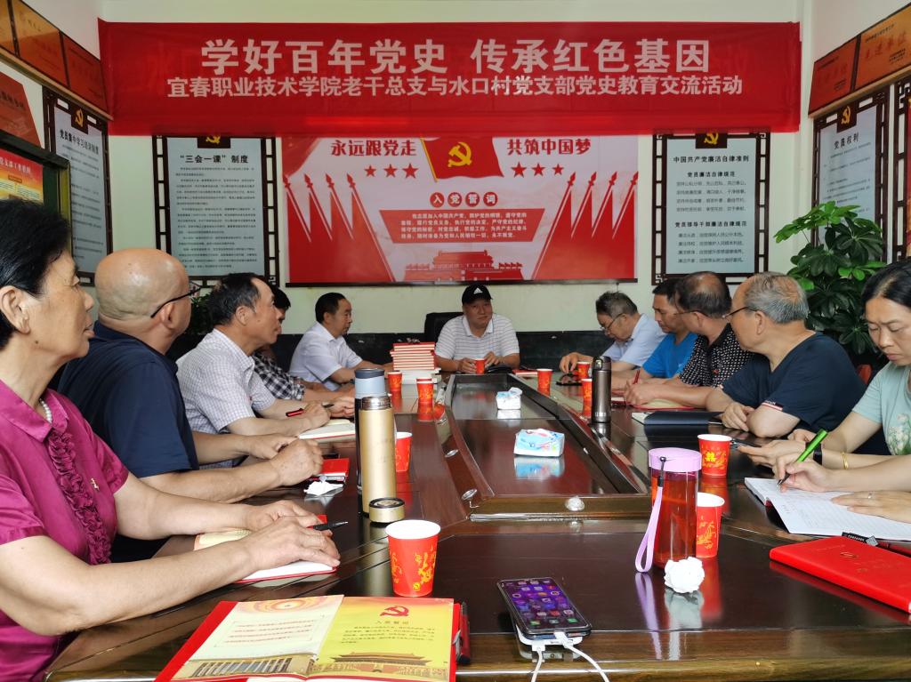 水口村在温汤镇西南部,距集镇5公里,辖7个村小组,550多人口,经多年建设,村庄基础设施、生态保护良好,村道十分整洁,民居颇富文化韵味,有森林公园5800亩,获江西省4A乡村旅游景点、江西省水生态文明村、江西省五十佳最具乡愁村庄、江西省森林公园、中国最佳健康养生休闲旅游名村等殊荣。此次党史教育交流活动,首先由水口村党支部书记、乡村旅游致富带头人、袁州区优秀党员刘平华,介绍水口村基本情况,党史教育、秀美乡村建设、农家乐和民宿的创建作法,表示对这种交流活动非常欢迎,以后要经常举行。接着,宜春职院的专家作了巜让我们一起来践行塞罕坝精神》的党史教育报告,宣讲了可与井冈山精神、长征精神比肩的、受到习近平总书记高度赞扬的、以牢记使命艰苦创业绿色发展为主要内容的塞罕坝精神。然后,职院离退休人员管理处党总支书记赖洁辉上了一堂微党课,以党中央强调和要求的学史明理、学史增信、学史崇德、学史力行为中心,谈了自己的学习体会,深得全体参加交流活动同志的赞扬。最后党员们再一次重温了入党誓词。大家表示,此次交流活动收获满满。
