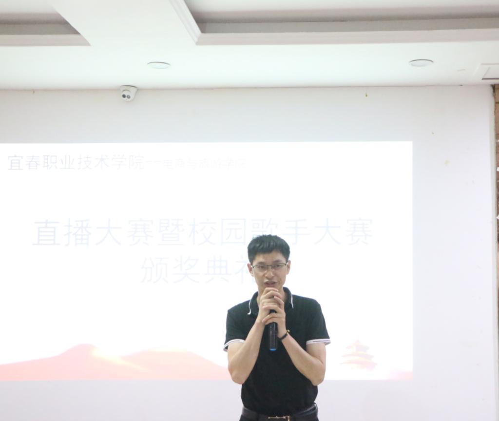 随后,我院党总支书记谭育林上台讲到,这个比赛阶段尽管短,但是大家开展直播比赛是不简单的竞赛,它是一个展示的平台,一个模拟工作的过程,是整个学习生活过程的一部分,还鼓励同学们在接下来的日子,应该更加努力地学习,掌握专业的全面的知识,更加努力去拼搏,以便将来投入到实战之中,希望大家能够在未来取得更好的成绩。
