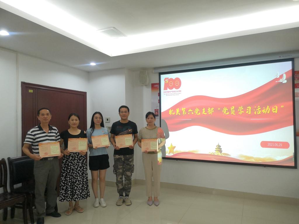 本站讯(通讯员 刘思敏)为庆祝建党100周年,进一步增强党支部的凝聚力、战斗力、号召力,激励广大党员坚定理想信念、增强党性意识,机关第六党支部于6月29日下午在科技综合楼413开展了“党员学习活动日”活动。