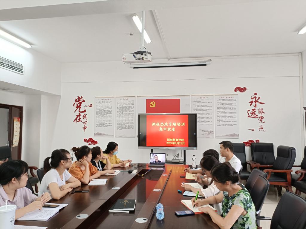本站讯(国际教育学院 颜灵仪)为了进一步提升我院教师“课程思政”教育教学能力,8月21日至22日,我院组织全体教师参加江西省高校教师“课程思政”建设能力专题培训。培训采取线上与线下两种方式。8月21日及22日下午国际教育学院组织各教研室主任以及全体党员教师在科技综合楼401室参加集中学习。