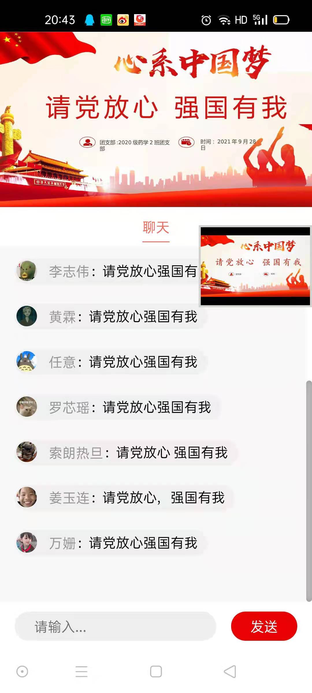 本站讯(医学院 李莫娴 学生记者 秦可馨)医学院于2021年9月28日组织师生开展“请党放心,强国有我”线上主题团日活动。