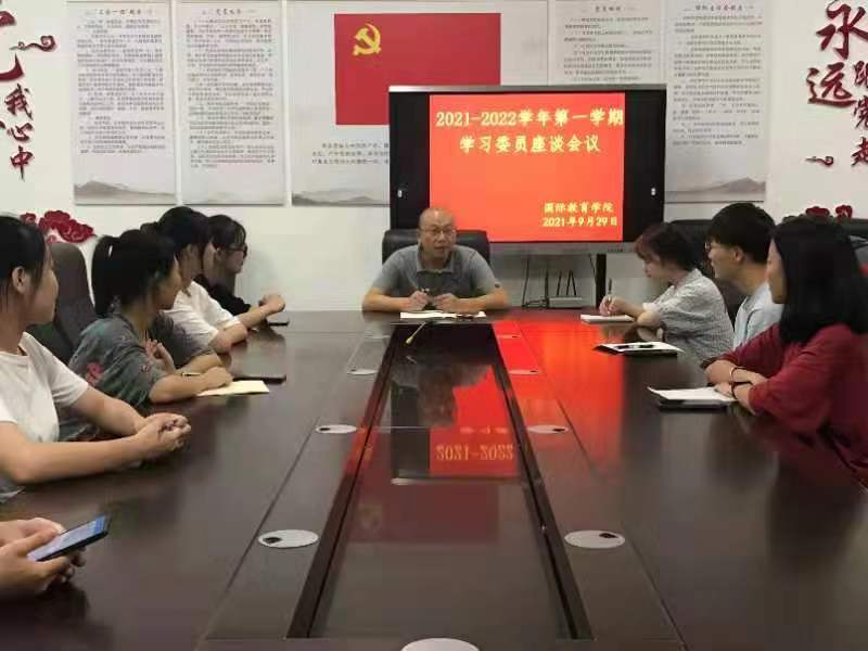 本站讯(国际教育学院 学生记者 何雪琪)新学期开始,为了进一步了解我院学生学习状态,帮助同学们养成良好的学习习惯、营造浓厚的学习风气,国际教育学院于2021年9月29日在科技综合楼401召开了本学期学习委员座谈会。会议由副院长肖勇主持,在校班级学习委员及部分学生代表共15人参加。