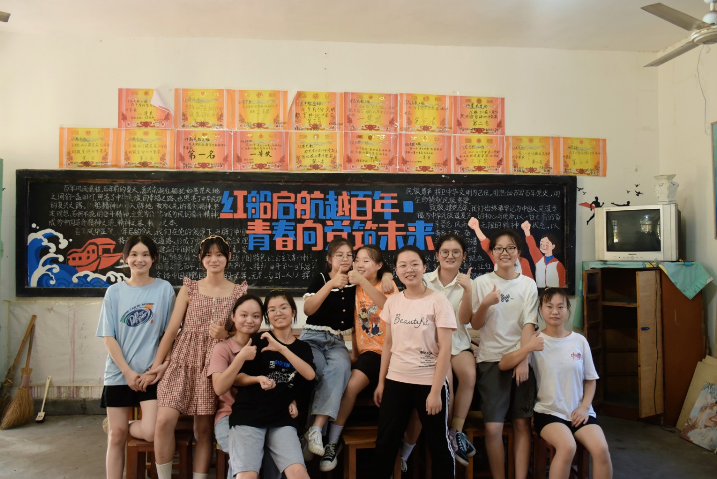 为了给初来乍到的学弟学妹们一个干净整洁的学习环境,19级和20级艺术教育的学长学姐们,纷纷以身作则,主动整理并清扫新生教室,用热情来表示对新同学们的欢迎。志愿者们分工协作,相互配合,一个个勤劳的身影,用扫把和抹布将宽敞明亮的教室变得焕然一新,摆放整齐的桌子,为即将到来的新生们营造出舒适的学习氛围和清洁的生活环境。教室的黑板上也布满热情迎接他们的欢迎语,迎接和期盼的气氛溢满了整个教室。