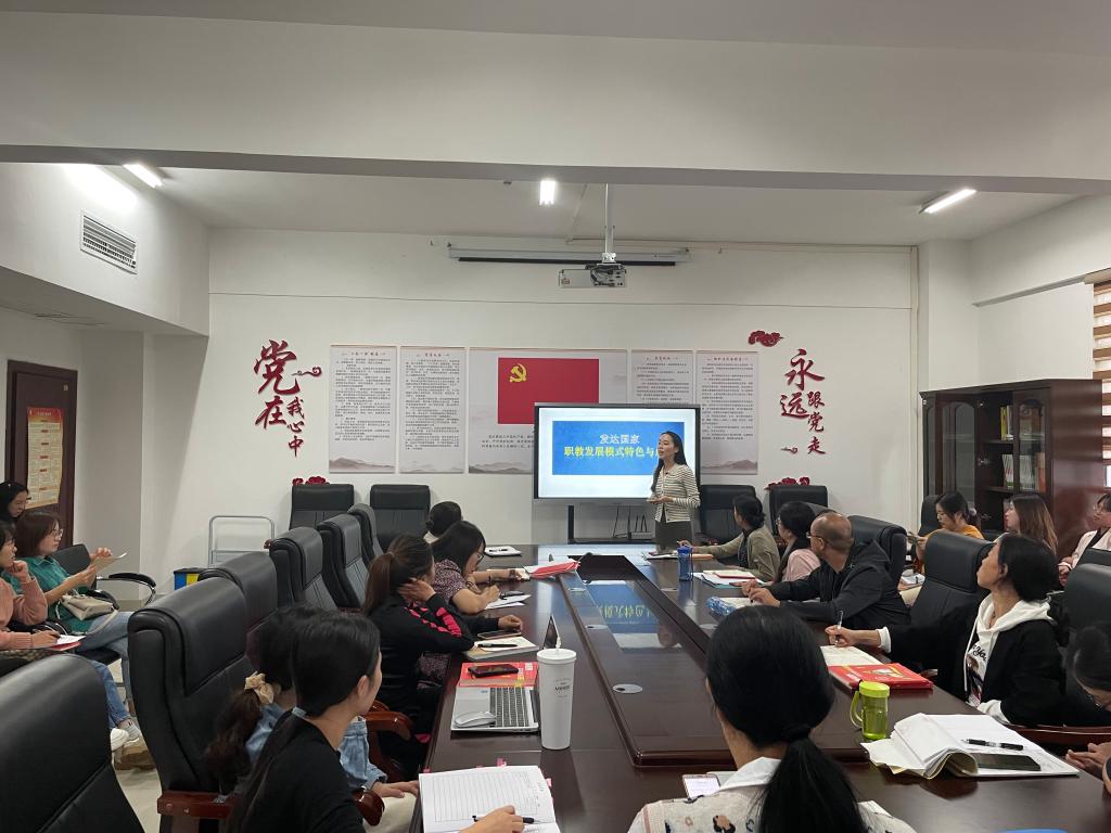 为进一步落实《深化新时代职业教育“双师型”教师队伍建设改革实施方案》, 打造“双师型”教师队伍,国际教育学院以积极推进教师培训与实践锻炼为抓手,不断提高教师“双师”素质。2021年我院组织严昳芳、易辰蔚两位老师参加进修培训。严昳芳老师今年8月参加了1+X证书--实用英语交际职业技能等级证书考试(简称VETS)的师资培训,严昳芳给大家详细介绍了VETS考试的基本情况,包括考试内容、相关课程教学方法、考试证书的前景等,并和大家分享了自己教授这门课的心得。易辰蔚老师刚刚完成江西省职业院校教师素质提高计划远程培训项目的学习,易辰蔚和大家分享了发达国家职业教育发展模式特色与启示,给大家带来了职业教育的前沿理念。