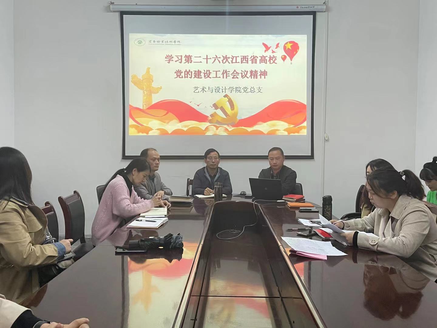 本站讯(艺术与设计学院 钟敏)10月19日,艺术与设计党总支召开会议,专题传达全省高校党的建设工作会议、宜春市第五次党代会精神,研究贯彻落实意见。艺术与设计学院党总支书记罗平主持会议并讲话,全体党员出席会议。