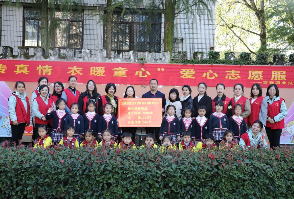 本站讯(师范学院党总支 徐艳梅)为关心关爱农村留守儿童,在世界儿童日即将来临之际,师范学院党总支下属支部鲲鹏幼儿园党支部联合学前教育党支部于2021年11月8日上午在鲲鹏幼儿园举行了“书传真情 衣暖童心”爱心捐赠活动。本次帮扶对象为楠木乡中心幼儿园和金瑞平安幼儿园。师范学院党总支书记邹晓英、副书记饶丽、张玉娟,鲲鹏幼儿园党支部,学前教育党支部部分党员及幼儿家长和幼儿代表参加了活动。