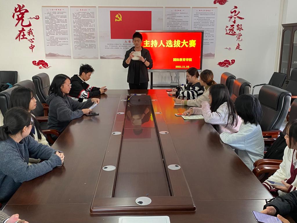 本站讯(国际教育学院 朱媛 学生记者 何雪琪)为了营造丰富多彩的校园文化氛围,展现我院学生的语言综合素质,国际教育学院于11月10日下午在科技综合楼401会议室开展了主持人选拔大赛。此次比赛由国际教育学院团总支书记朱媛和辅导员金岩担当评委。