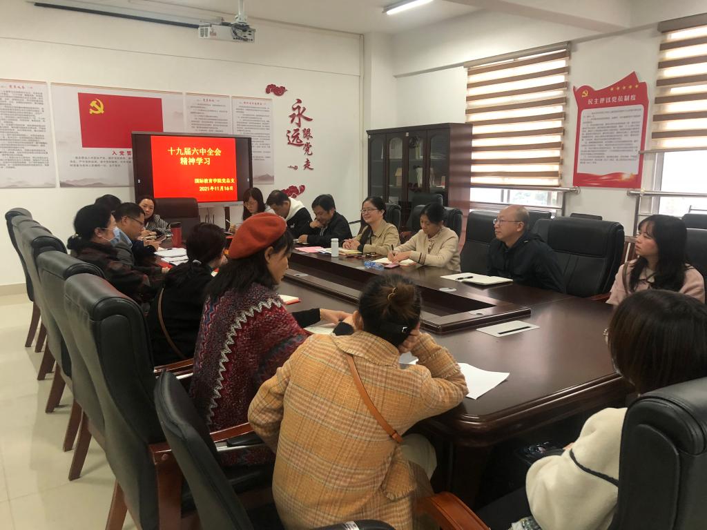 本站讯 (国际教育学院 杨琨)为深入学习贯彻党的十九届六中全会精神,从党百年奋斗的历史经验中汲取力量,发挥党员的先锋模范作用,进一步增强基层党组织的政治功能和战斗力,国际教育学院党总支于11月16日下午4点15在科技综合楼401党员活动室开展了十一月的党员学习活动日活动并召开了党员大会。