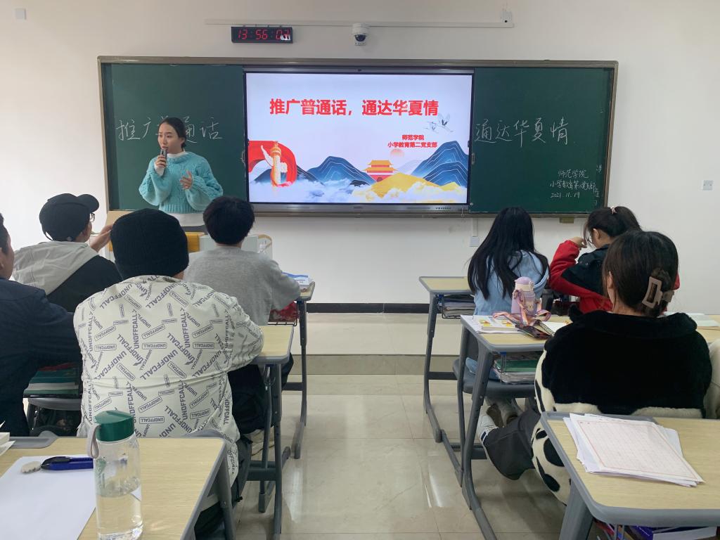 本站讯 (师范学院党总支 熊莹)为构建学校和谐教育,关心帮助少数民族学生提升普通话水平,强化推普意识,增强民族凝聚力,11月19日下午,师范学院小学教育第二党支部在新校区正心楼C212开展了“推广普通话,通达华夏情”的党建品牌特色活动。