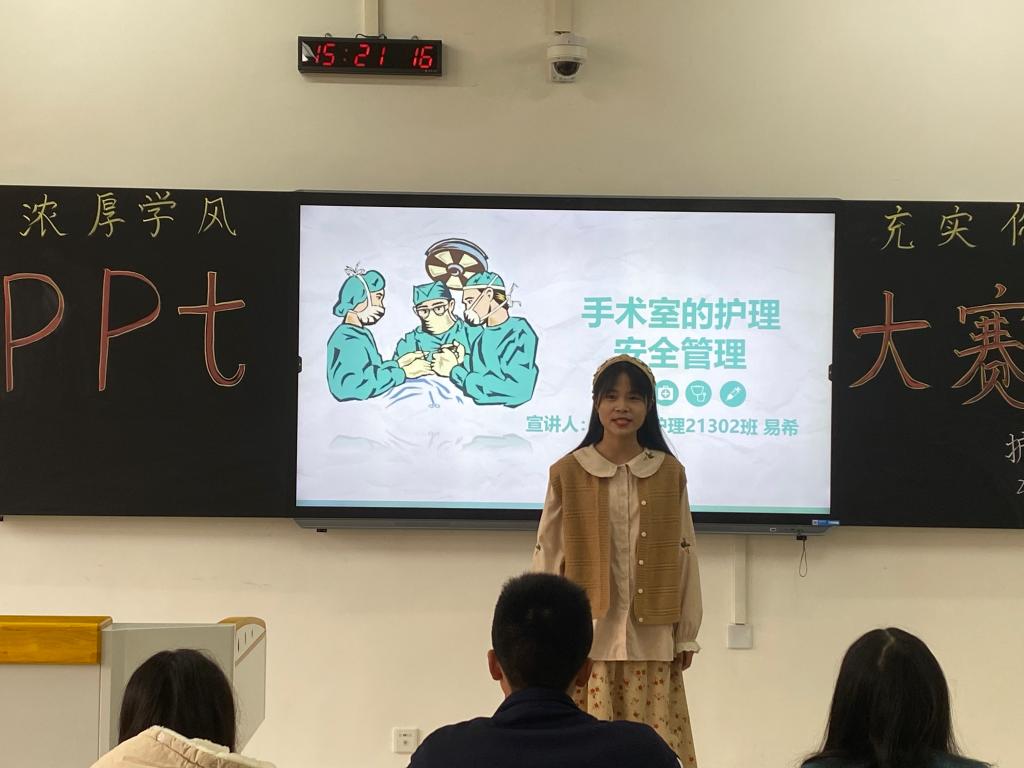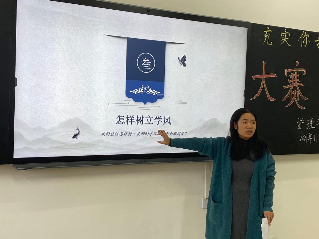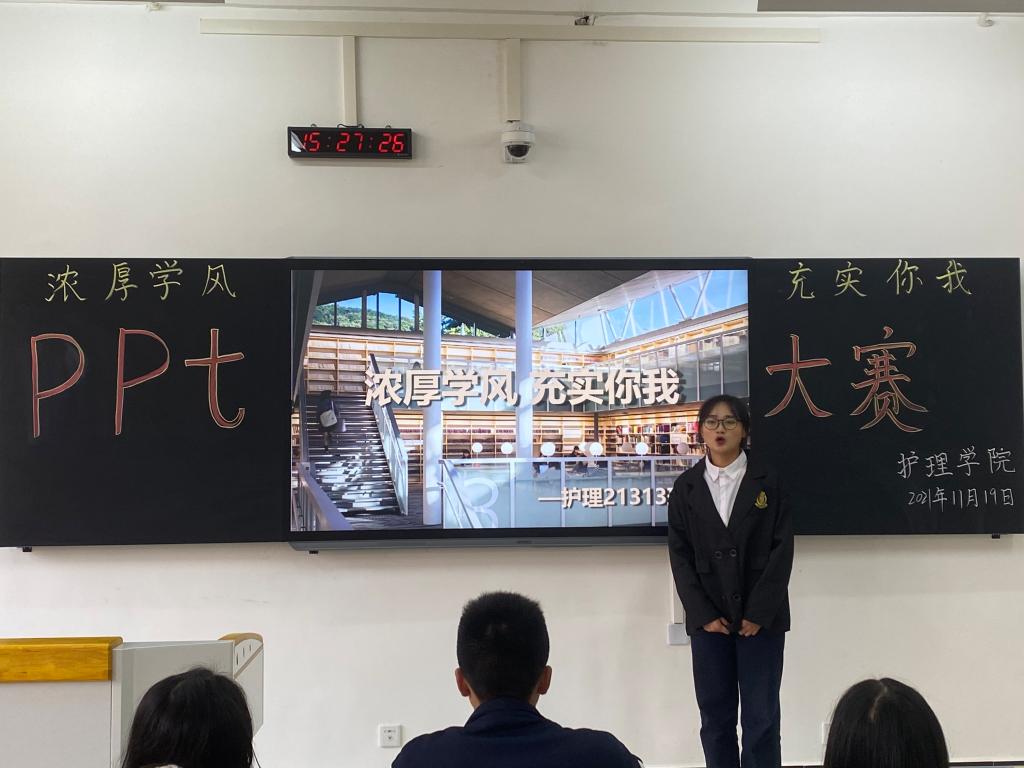 本站讯(护理学院 刘明健 学生记者 朱文静)为进一步加强学风建设,激发同学们的学习的积极性和主动性,帮助同学们更好地学习专业知识,提高学生的综合素质。11月19日下午,护理学院于和济楼C306开展“浓厚学风,充实你我”PPT风采大赛。特邀学工科陈丽红老师担任本次活动的评委,21级新生共65名选手参赛。