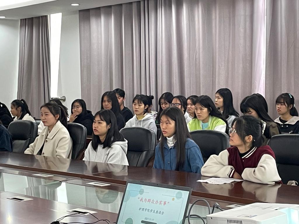 此次座谈会气氛活跃,轻松愉快,是学院教学和管理反馈的一个重要环节,是师生交流反馈的良好平台,对学院了解并解决好学生的思想、学习生活上存在的实际问题,推动我院学生管理工作内涵建设,提高我院服务学生的能力和质量有重要的积极作用。(摄影饶玉婷)
