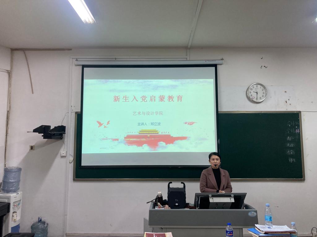 本站讯(艺术与设计学院 吴卿妍)为引导我院学生学习党的历史,加深对党的先进性的理解和认识,引领大学生树立远大理想。艺术与设计学院学生党支部书记郑立波于2021年11月19日上午9:30在科技楼401,为各班班长、团支书及2021级新生代表讲授“新生入党启蒙教育”专题党课。