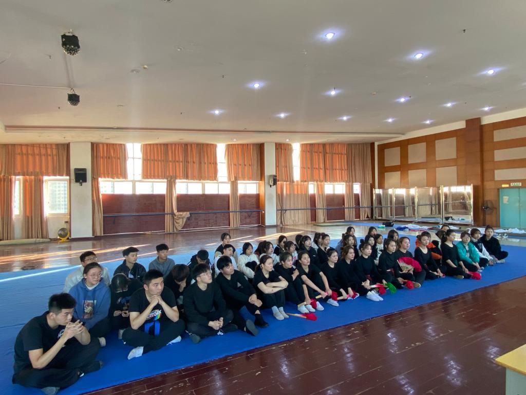 然后分别由新﹑老生班级分别汇报展示专业情况;17级采茶班全体同学展示腰腿功、毯子功的技术动作组合,男生武身训组合,女生表演采茶戏《求万岁》、《梁祝》唱段等,突显了同学们‘台上一分钟,台下十年功’的专业精神。紧接着21级采茶班的同学展示了拉丁舞﹑中国舞,空翻等节目片段,充分展现出大家对艺术的热爱与执着。专业展示结束后同学们纷纷发言:采茶班老生感叹时光飞逝,希望自己在有限时间里多练功多学本领多学专业知识,学艺之路唯有坚持方得始终;叮嘱学弟学妹们不能荒废时间,五年其实只是一瞬间。采茶班新生说道要向学长们学习他们的不怕苦不怕累的精神,羡慕他们的专业能力,希望自己能克服困难学好专业技能,五年以后自己也能发光发热。