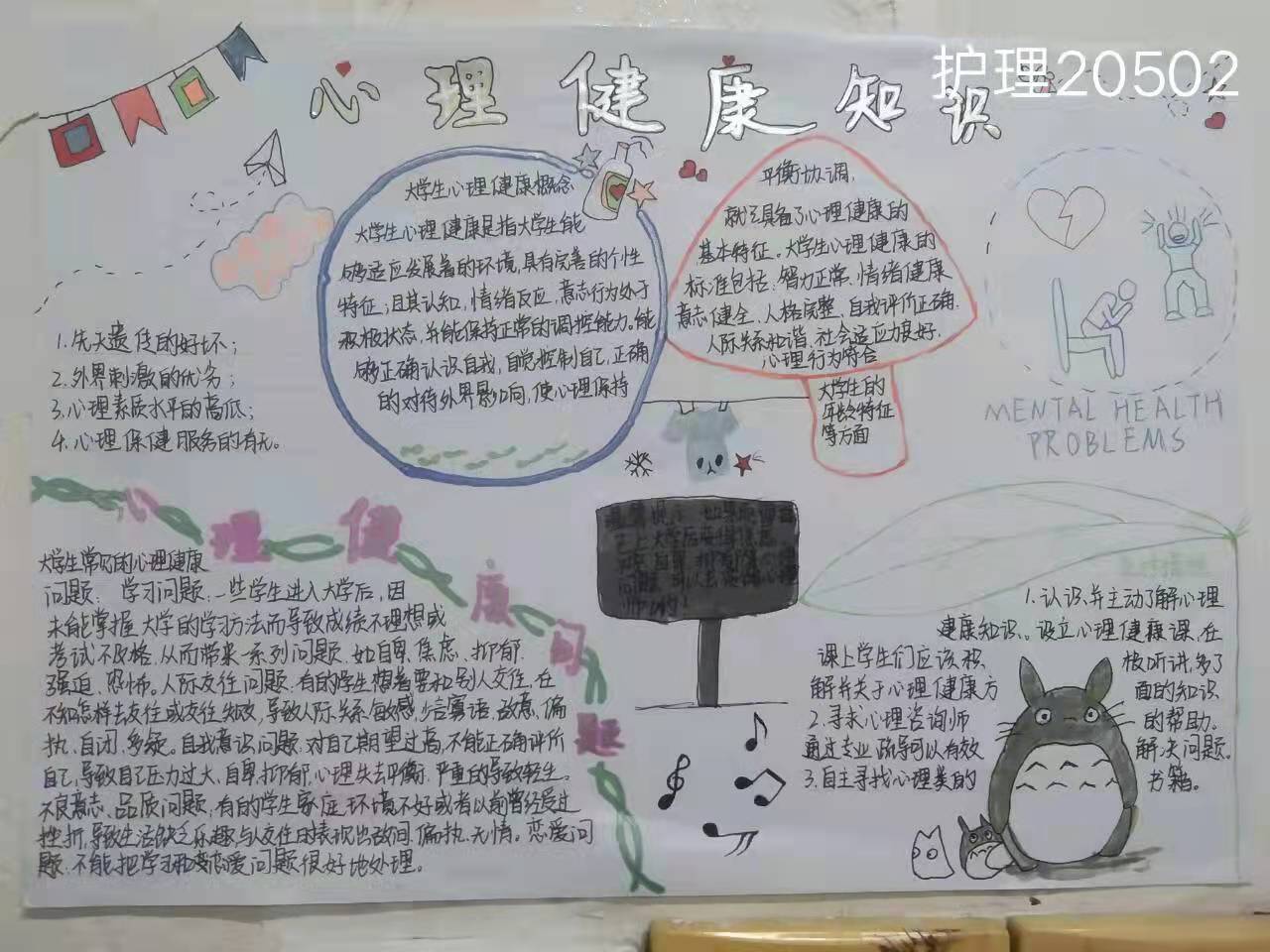 同学们心灵手巧,利用课余时间收集资料,精心设计编排,一副副作品,构思精妙,内容丰富,图文并茂地将心理健康知识及常见心理问题的处理小技巧诉诸于画纸上。最终,经过评委的认真评审,19高护2班的手抄报作品荣获本次比赛的“一等奖”。