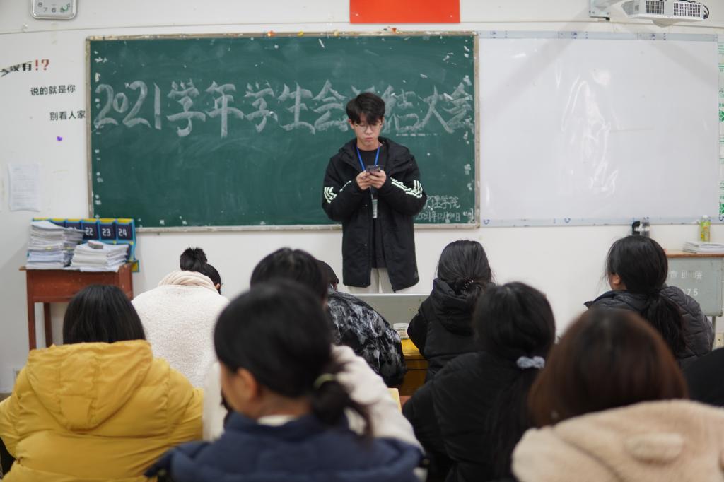 本站讯(护理学院 刘明健 学生记者 周宇)为凝聚我院学生会工作人员力量,总结本年度学生会各项工作。12月30日中午,护理学院于第一教学楼204教室召开了2021年学生会述职评议会。本次会议由团总支负责人刘小三老师主持,特邀学工科科长曲晴老师出席,全体学生会工作人员参会。