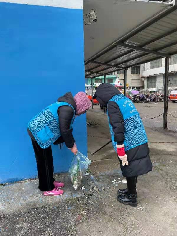 活动期间,志愿者们统一穿着标志性蓝色志愿服,分成若干小队前往各条街道、社区等场所进行环境清整行动和疫情防控知识宣传。虽然天气寒冷,志愿者们的干劲丝毫不受影响,各负其责、井然有序,她们有的负责来回巡查并认真清理小区内的杂物垃圾,有的负责垃圾桶周边保洁,有的负责将乱停放的自行车、电动车等整齐的归整到指定停车位,还有的不厌其烦的向小区物业值守人员及来往路人宣传疫情防控知识。在皑皑白雪中践行和弘扬了“奉献、友爱、互助、进步”的志愿服务精神。