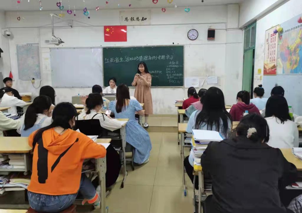本站讯(国际教育学院 朱媛 学生记者 刘嘉书)为提高学生对生活垃圾分类、减量的意识和丰富垃圾分类知识,推动全院学生形成主动参与垃圾分类的良好氛围,国际教育学院在校班级于3月13日晚在教室开展了《江西省生活垃圾管理条例》(以下简称《条例》)专题学习。