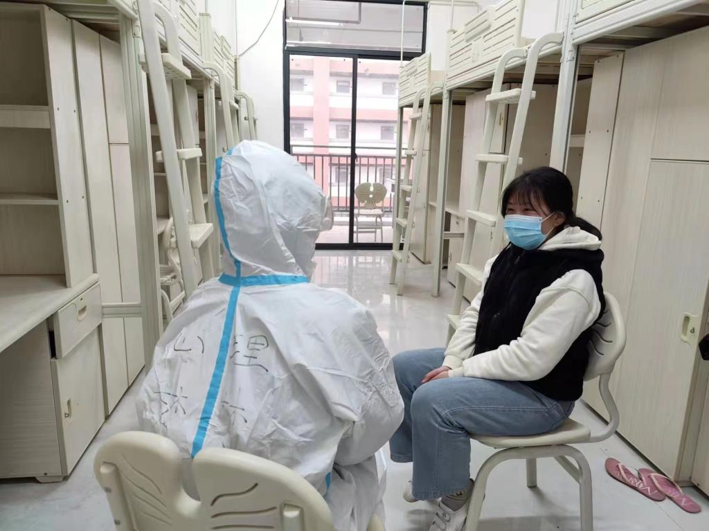 学工处值班人员入住学生宿舍。为加强值守力量,党支部书记谢海英带领辅导员入住学生宿舍,以“担当、尽责、奉献”的姿态,确保24小时“不掉线”。不定期抽查学生在宿舍每日监测体温情况,及时通报,及时督促整改。宿管人员每日检查宿舍卫生,确保开窗通风、环境整洁,防止细菌滋生。对于学生反馈的各类问题(如维修等),也不厌其烦地解答、协调、疏导。做到深入学生勤巡查,妥善处理勤协调,立即落实不拖拉。专人负责统计每日的疫情防控统计数据,监测动态,确保将各部门需要的疫情防控数据有效整合,发现问题立即查清,做到底数清,变化明,台账细,人员管控到位。支部党员还参与到学校疫情防控志愿服务活动中,到食堂维持秩序、督促学生佩戴口罩。部分党员参与滩下社区上户排查、登记核酸检测等志愿服务。