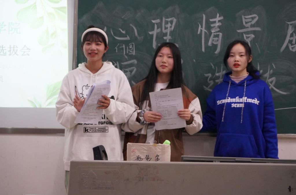 活动前,为活动开展顺利,各位心理委员分成接待组、评委组、统分组、宣传组和剧本组,为有序开展工作做好准备。活动中,每位心理委员按照工作分工,积极做好所在职责之事。其中,报名参加演员的学生带来了非常精彩的表演,比如,电商21303班刘恩溪情感突出,旅游21301班邵瑞代入感强,表现突出,收获较多好评。