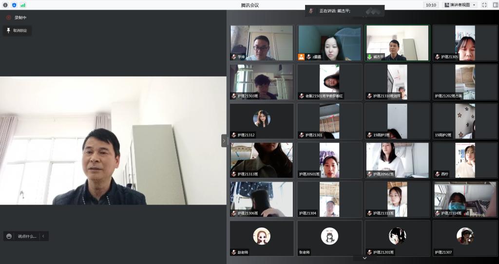 本站讯(护理学院 李学坤 张越)为进一步做好疫情防控期间线上教学工作,及时掌握和解决学生在线上学习过程中的情况和问题,提升线上教学质量,护理学院于5月14日下午组织召开线上教学质量学习委员座谈会。护理学院院长熊杰平、副院长李学坤、教务科全体成员、各教研室主任以及各个班学习委员参加了会议,会议由李学坤主持。