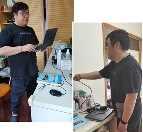 其中,有一些实践性较强的课程,如琴法、舞蹈课等,钢琴老师没有钢琴就在桌子上打拍子给学生示范,没有教材就用笔抄谱子跟学生分享;声乐老师隔着直播设备一遍遍演唱示范歌曲,课后通过布置作业一个个听学生的歌唱回课,并认真点评;一些年纪较大的专业课老师仍然坚持摸索线上教学形式,他们有的采用手写拍照形式,有的采用多种设备同步直播,目的都是为了给同学们上好每一堂网课,绝不耽误教学进度,老师们的种种努力尝试都是为了让同学们在“静态管理”期间能够学有所获。还有的老师,比如廖晨,因病住院,却依然每天利用笔记本电脑给同学们上课,同时增加与学生的课堂互动,尽心尽责。
