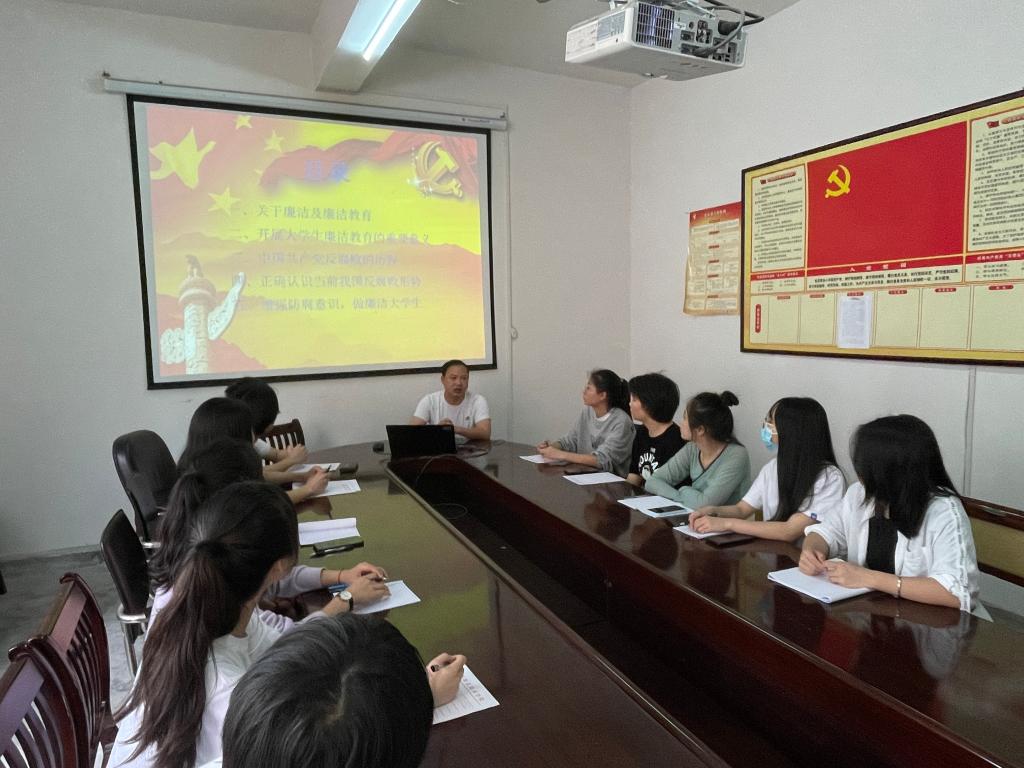 本站讯(艺术与设计学院 吴卿妍)为扎实推进惩治和预防腐败体系建设,不断增强学生干部的廉洁自律意识,促使学生形成“敬廉崇洁”的价值观念,艺术与设计学院于2022年5月25日在科技楼会议室开展“反腐倡廉法制讲座”。