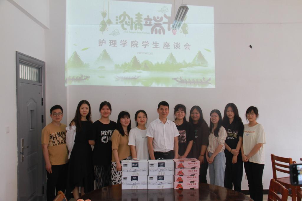 本站讯(护理学院 易国萍)菖蒲行走,艾草联欢。6月2日上午,护理学院班子慰问备战2022年全国职业院校护理技能和养老服务技能大赛的师生团队,表达端午佳节的慰问和祝福。