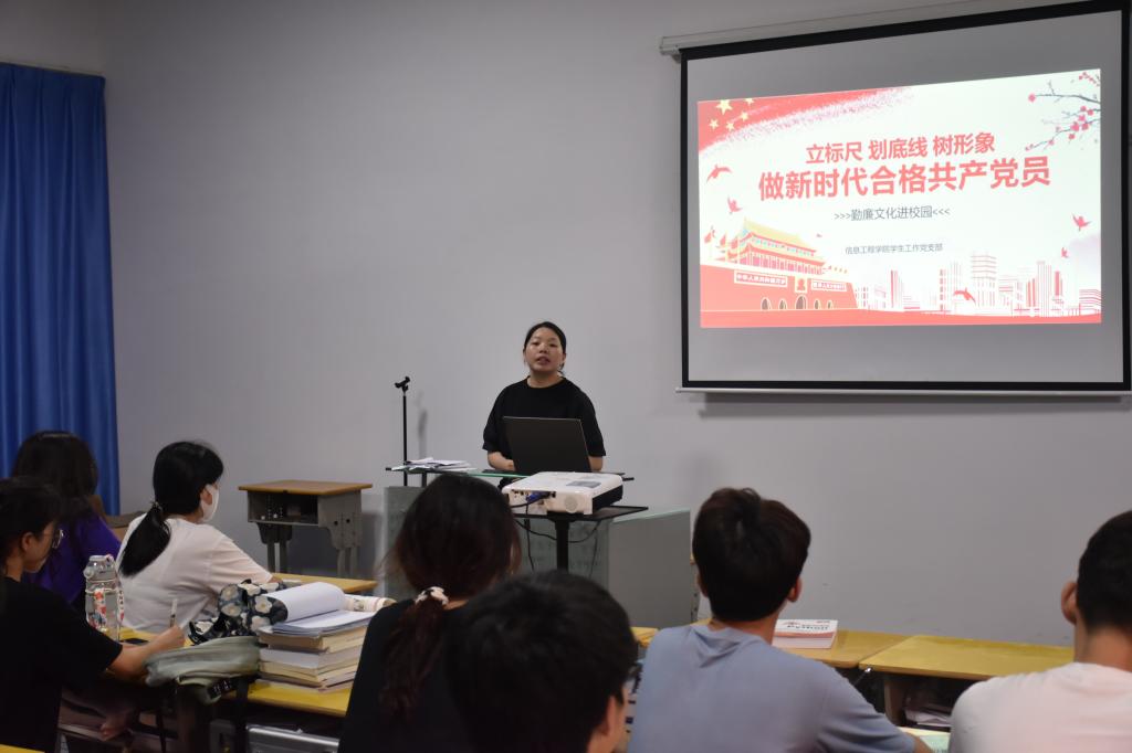本站讯(信息工程学院 易文意 曾红红)为推进校园廉政文化建设,培育大学生“敬廉崇洁、廉洁自律”的价值观念和道德情操。6月7日下午,陈根金书记以“勤廉文化进校园”为主题在信息楼一楼实训室给信息工程学院19名入党积极分子讲述了一堂生动的党课。
