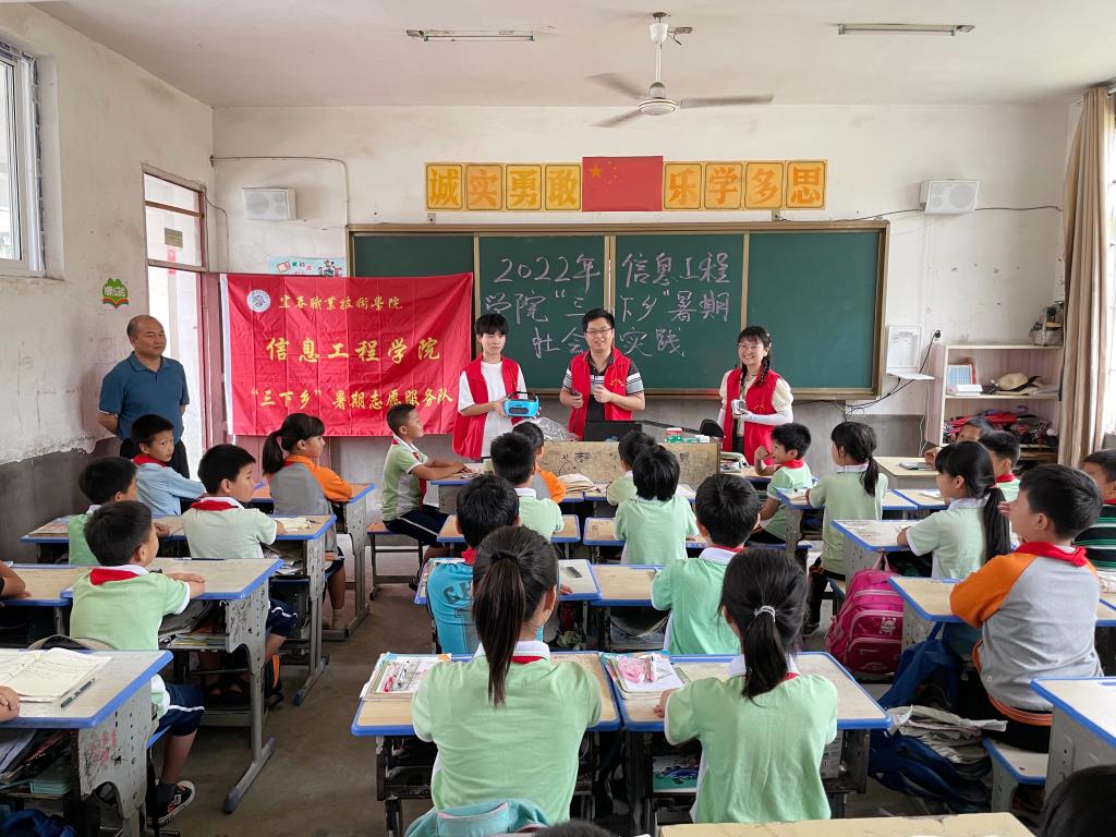 本站讯(信息工程学院 刘嘉妮)为深入学习习近平总书记在庆祝中国共产主义青年团成立100 周年大会上的重要讲话精神,为引导和帮助广大青年学生上好“大思政课”,在社会课堂中“受教育、长才干、作贡献”,推进专业+志愿服务、党建带团建与助力乡村振兴有机融合,助力乡村教育,6月17日,信息工程学院前往柏木乡开展科技文化“三下乡”暑期社会实践活动,由我院党员教师及学生志愿者共同组建“筑梦青春”志愿实践队。
