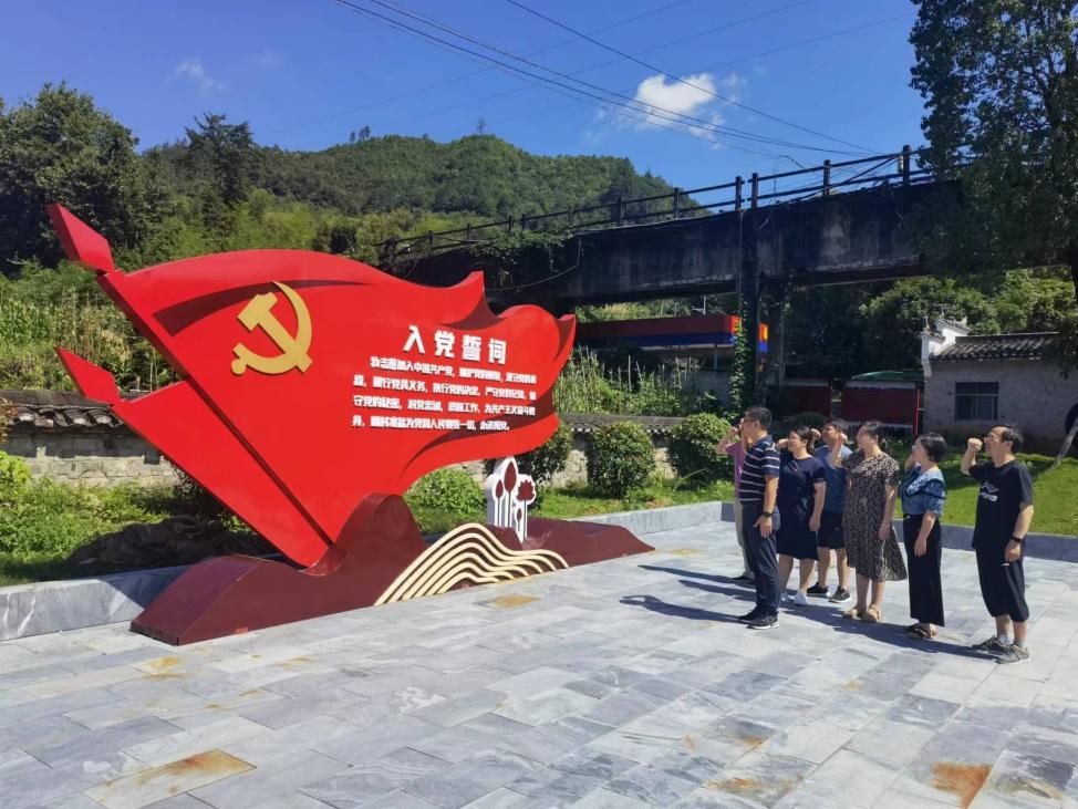 在瑶里的红色文化广场,全体党员同志重温了入党誓词,大家过了一次难忘的政治生日。