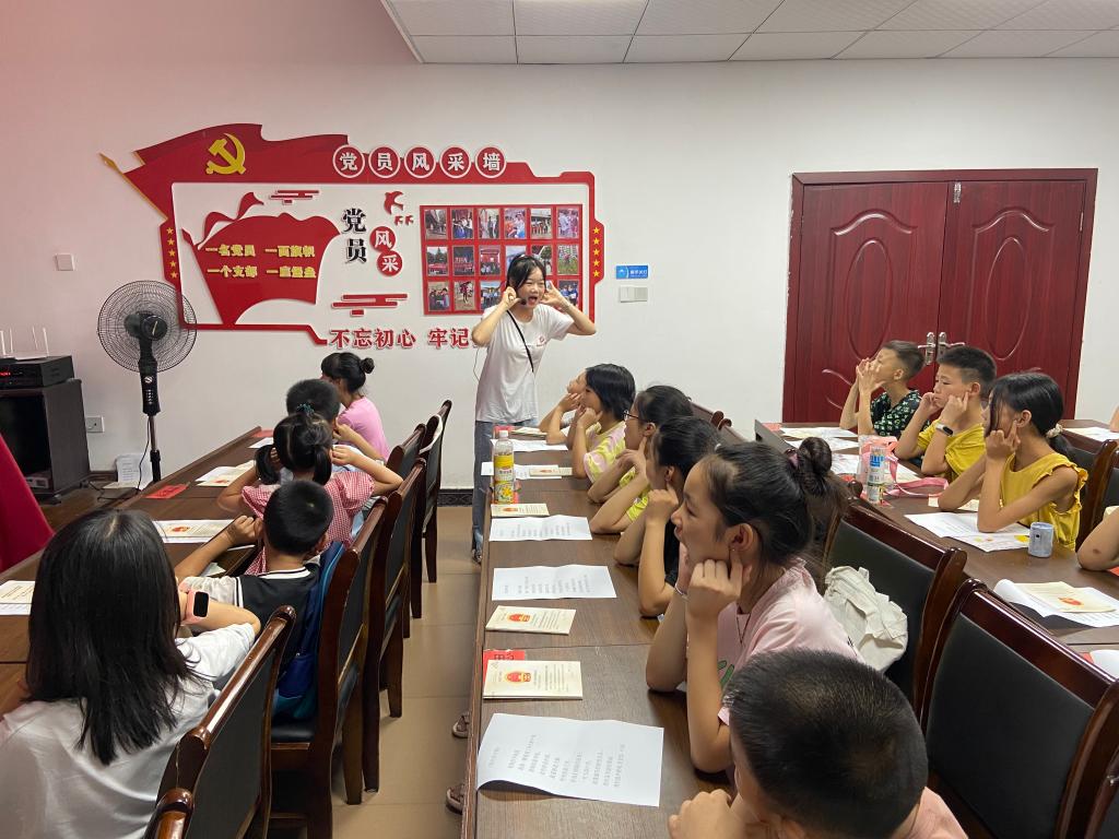 本站讯(师范学院 杨文姝 学生通讯员 陈赟 李如玉)为加大农村地区国家通用语言文字推广力度,助力乡村振兴战略深入实施,8月2日,师范学院推普团队赴宜春市袁州区新田镇深入开展“推普助力乡村振兴 童心乐享假日课堂”大学生暑期“三下乡”社会实践活动,充分发挥师范生的专业特色,让学生在实践中受教育、长才干、做贡献,推广普通话,助力乡村振兴。