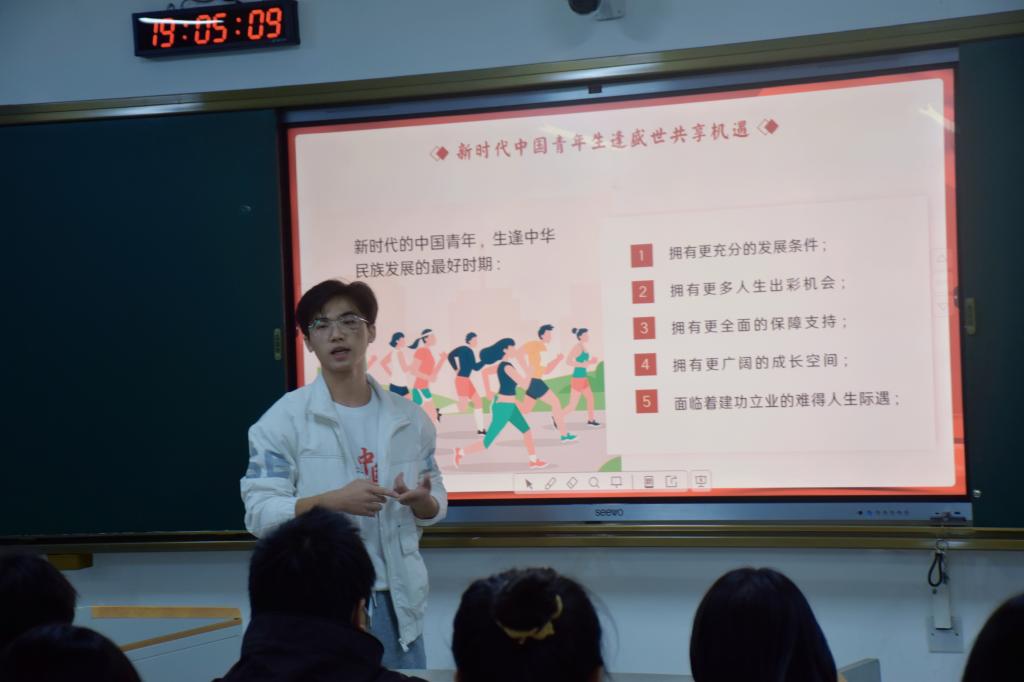 本站讯(经济管理学院 马思源 肖龙)为深入学习宣传贯彻党的二十大精神,11月20日晚,经济管理学院在正心楼开展了以“新时代的中国青年”为主题的学习党的二十大宣讲活动。本次宣讲活动由经济管理学院2021级入党积极分子宣讲。