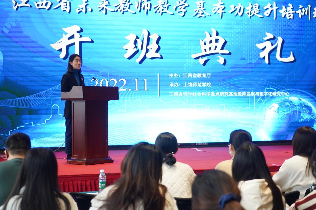 在开班典礼上,江西省教育厅师资处处长陈露先给同学们介绍了此次培训的作用与意义,她强调作为新时代的未来教师,我们要“铸师魂,修师能,强师德”,为乡村教育振兴奉献自己的一份力量!