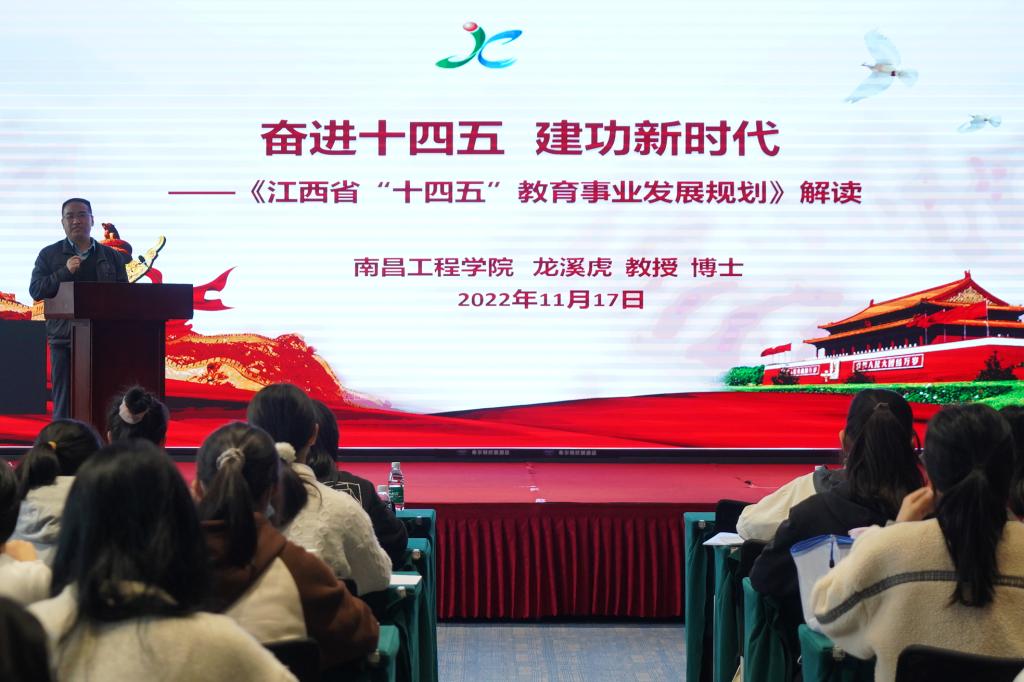 在之后的培训中,江西师范大学的汪荣有教授围绕孔子的教育思想,结合新时代下师德师风的工作要求及定向师范教育的特点,带领同学们学习孔子教育思想对中华民族几千年教育的重要意义,指明了未来教师师德培养的方向和路径。南昌工程学院的龙溪虎教授,以“奋进十四五 建功新时代”为主题,向同学们作了《江西省“十四五”教育事业发展规划》的解读报告。他分别介绍了我省学前教育、基础教育、高等教育、特殊教育发展情况及未来的发展规划,重点围绕乡村教育的发展短板和目标进行论述,对定向师范生今后走向教学岗位具有积极的指导意义。