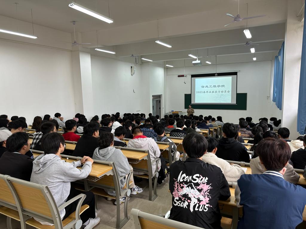 本站讯(信息工程学院 袁勋)为让学院学生正确认识和对待实习,充分调动学生的主动性和积极性,提升实习就业质量,11月23日下午,信息工程学院在智云楼B102阶梯教室举办2023届毕业生实习动员会。副院长陈根金、综合科科长袁勋、各毕业班班主任及全体毕业班学生参加会议。